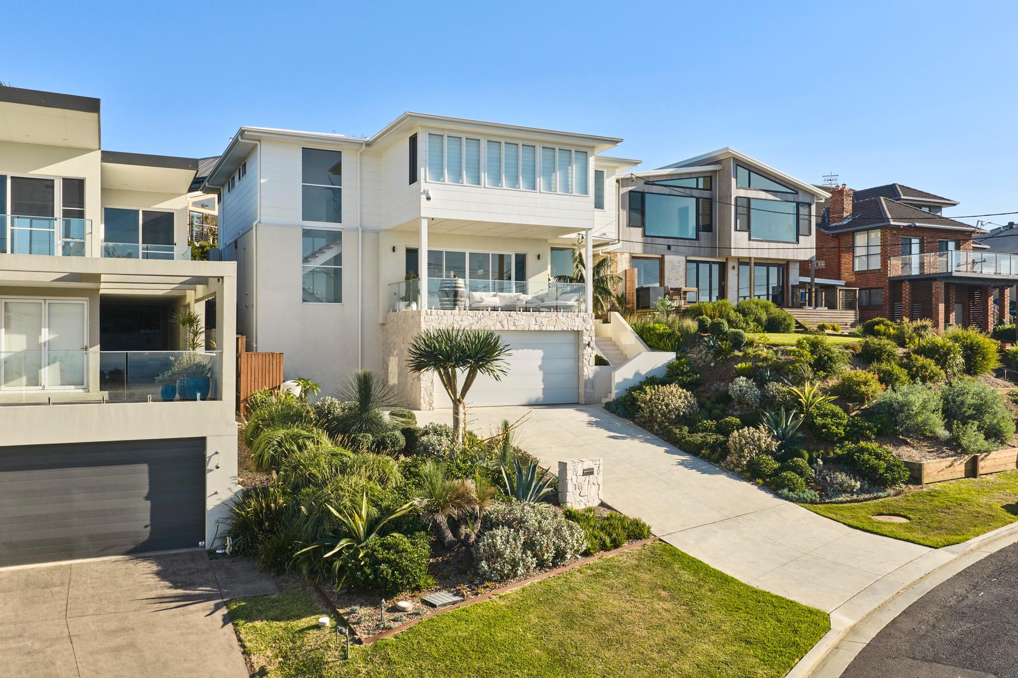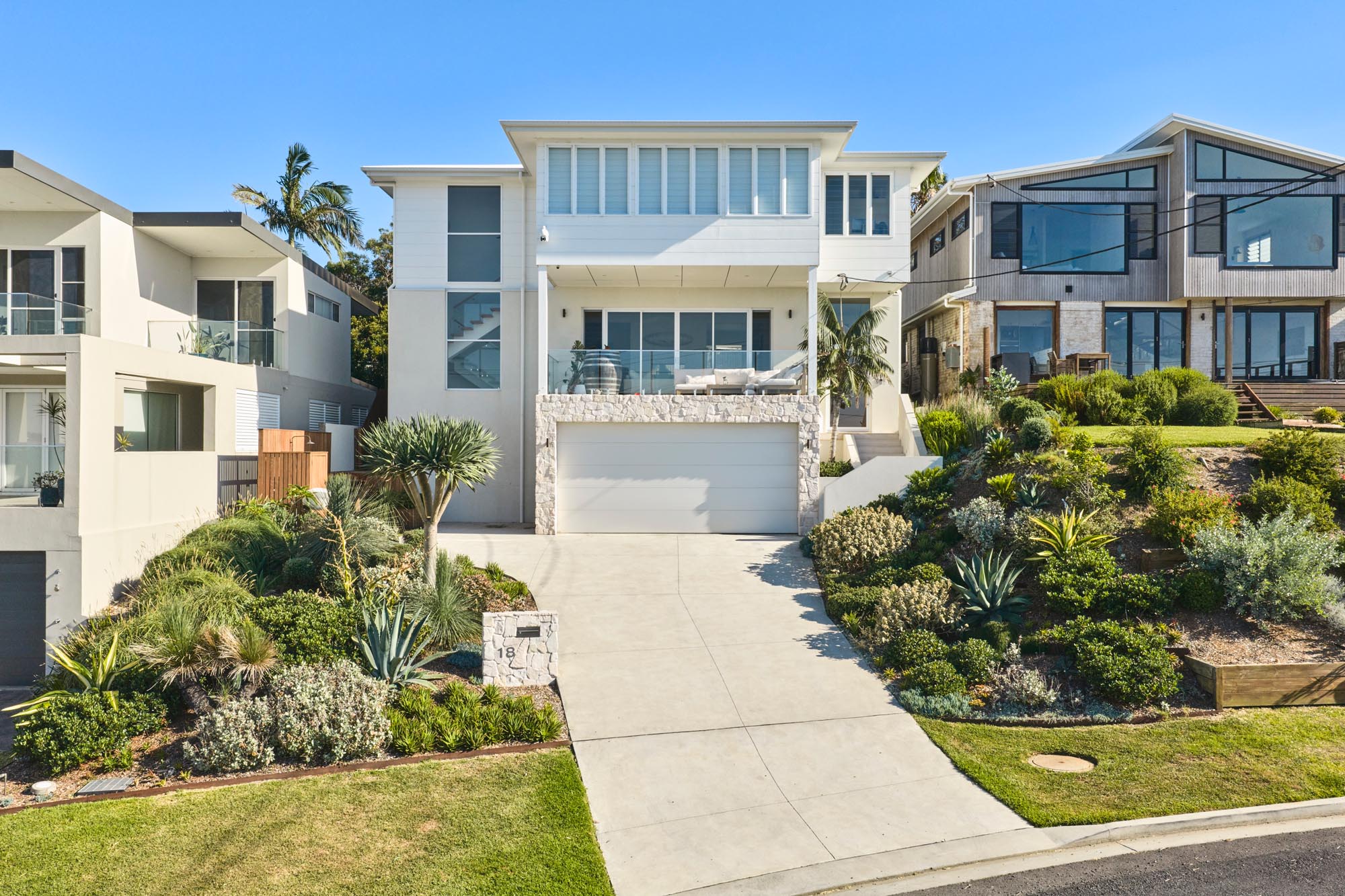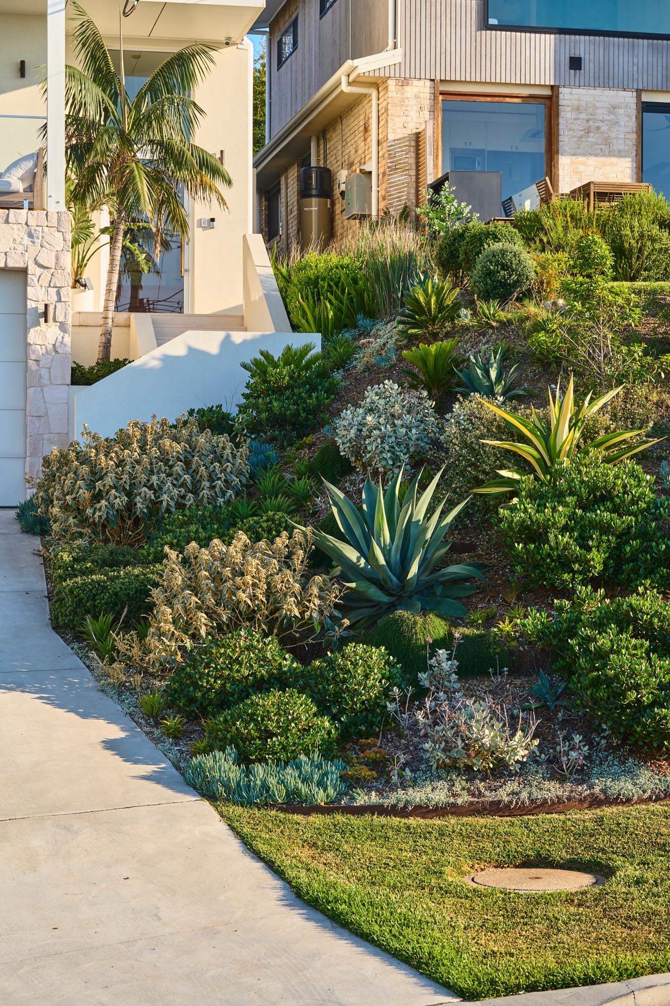 The Landscape surrounds a south-facing, modern contemporary residence with strong architectural lines and a clean, geometric aesthetic. The Design complements the architecture through structural plantings, minimalist materials and a meticulously curated layout that emphasises both form and function.